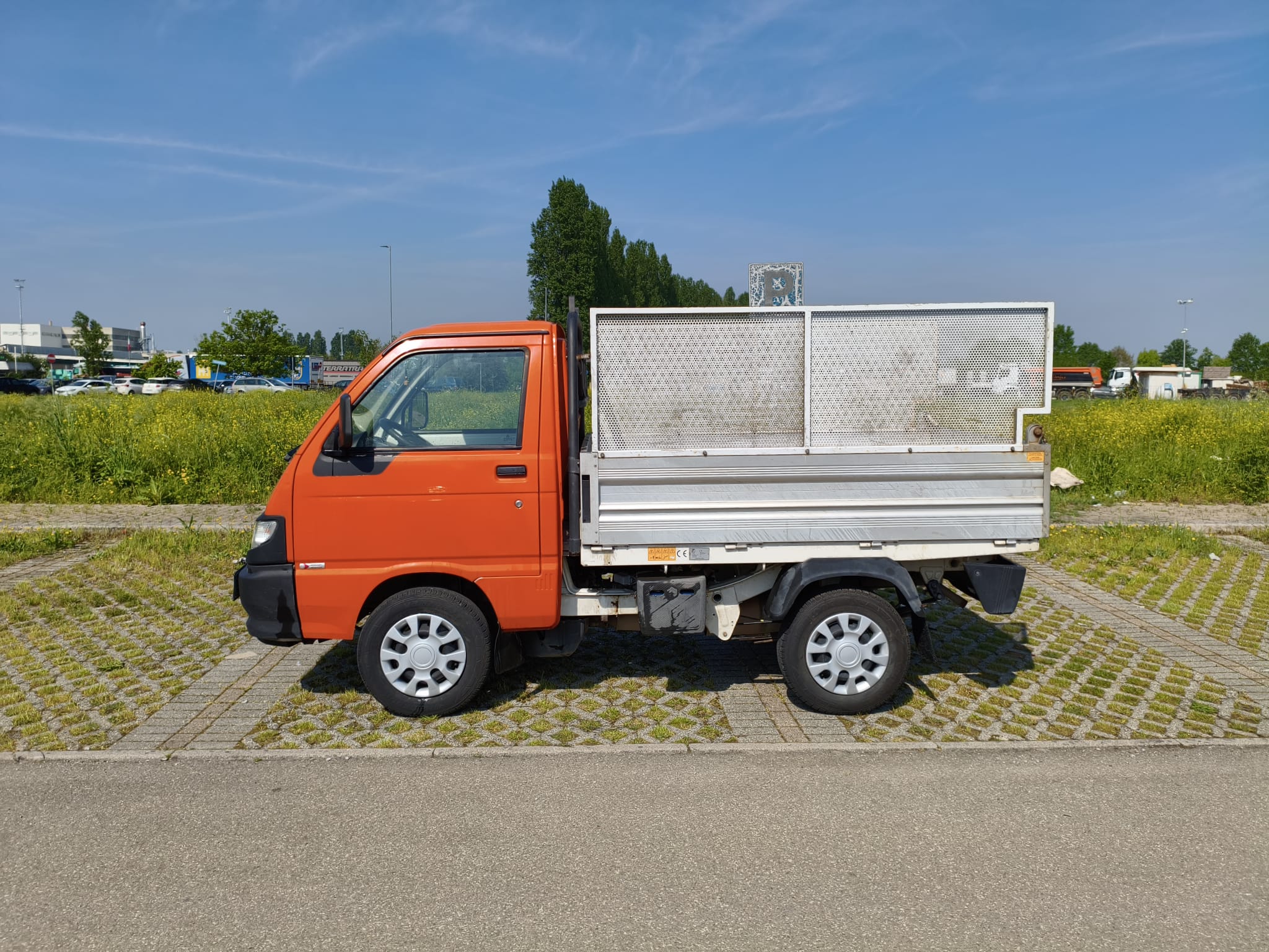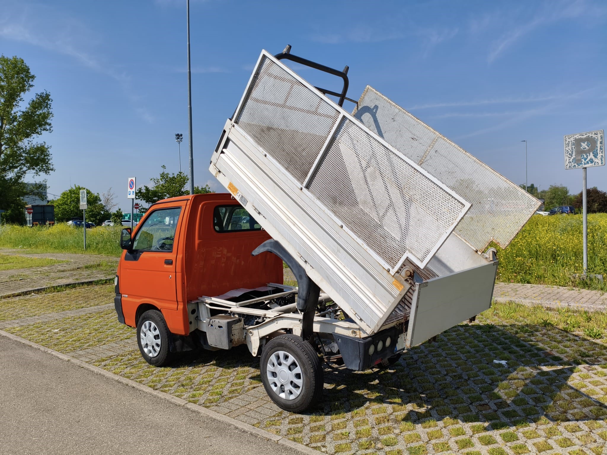 DESCRIZIONECASSONE RIBALTABILE POSTERIORE 2200×1620, SPONDE IN ALLUMINIO H 400 E SOVRASPONDE SMONTABILI IN LAMIERA FORATA. PARACABINA E PARAFANGHI CON PARASPURZZI