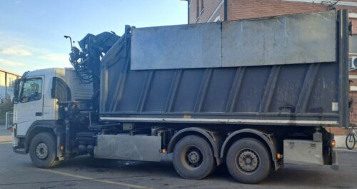 | DESCRIZIONE | CASSONE RIBALTABILE POSTERIORE CON GRU CARICATORE JONSERED 1440Z - Caricatore ripieghevole a Z - Ribaltabile in hardox lunghezza 6,20 mt - Coperchi superiori ad ali di farfalla a movimentazione oleodinamica - Portellone posteriore a libro con sgancio automatico |